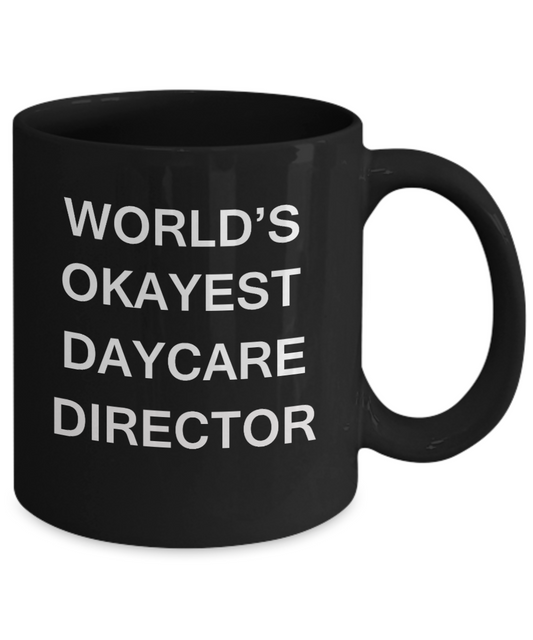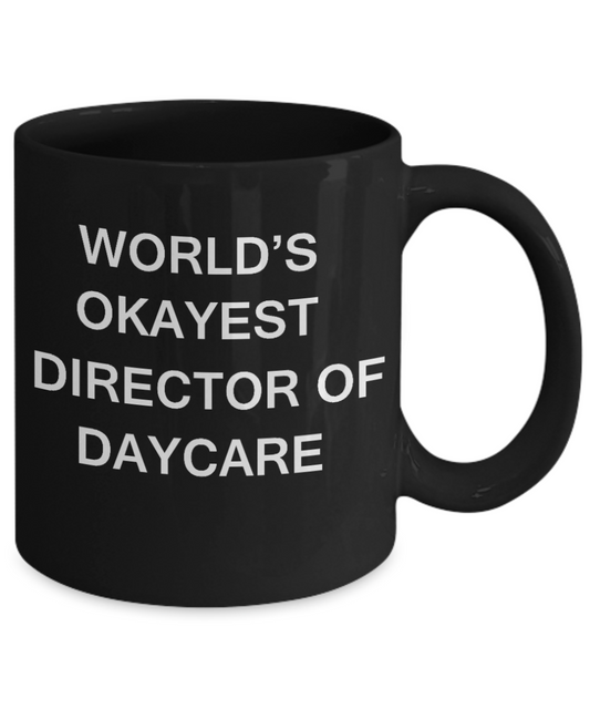Director of Daycare Gifts - World's Okayest Director of Daycare - Birthday Gifts Ceramic Cup Black, Funny Mugs Gift Ideas 11 Oz