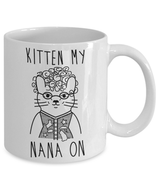 Cat Lovers Mugs , Kitten my Nana on - White Coffee Mug Porcelain Tea Cup 11 oz - Great Gift