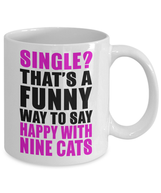 Cat Lover Coffee Mug, Single That's A Funny Way To Say Happy With Nine Cats- White Porcelain Coffee Mug 11 Oz for cat lover, mom, dad