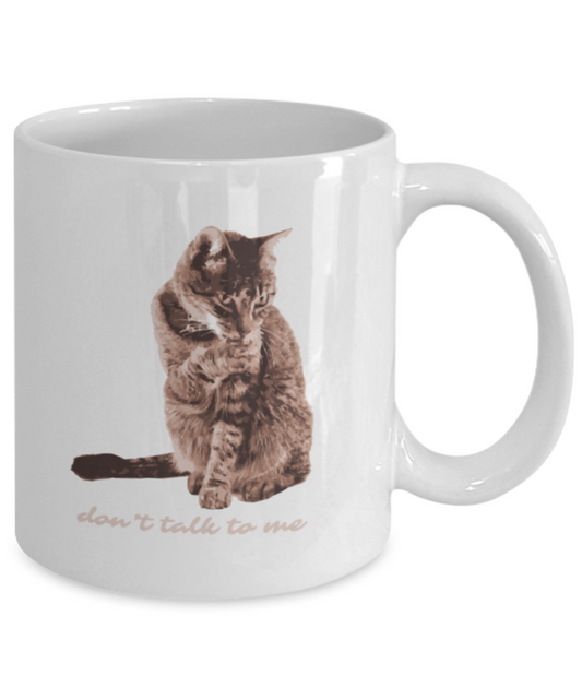 Cat Lovers Gifts , Don't talk to me - White Coffee Mug Porcelain Tea Cup 11 oz - Great Gift