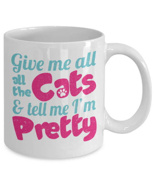 Cat Lovers Gifts , Give me all the cats - White Coffee Mug Porcelain Tea Cup 11 oz - Great Gift