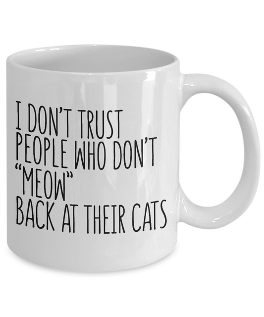Cat Mom Coffee Mug, I Don't Trust People Who Don't Meow Back At Their Cats-White Porcelain Coffee Mug 11 oz
