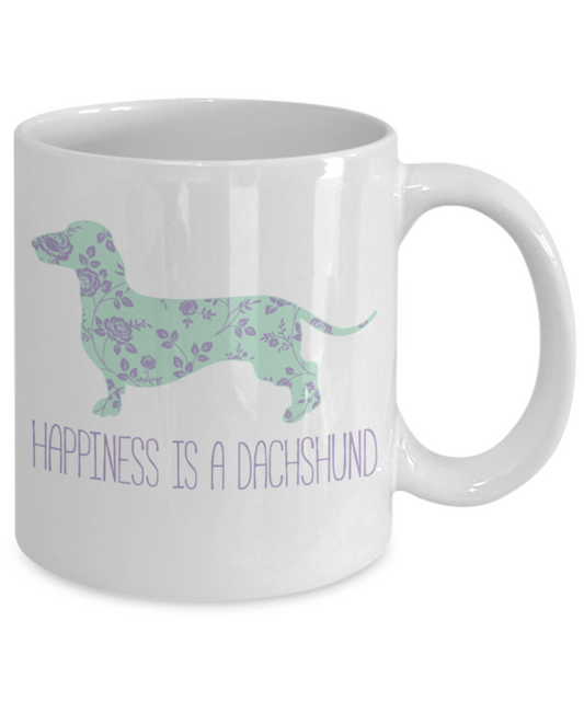 Cat Lovers Gifts , Happiness is a Dashchund - White Coffee Mug Porcelain Tea Cup 11 oz - Great Gift