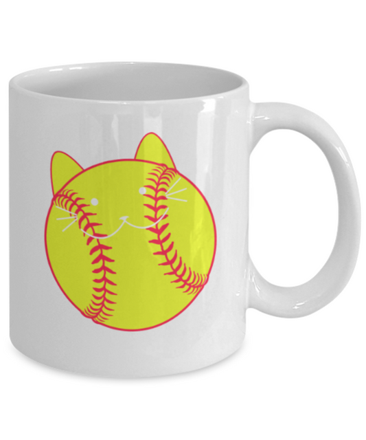 Cat Lovers Mugs , Mewt Ballgame - White Coffee Mug Porcelain Tea Cup 11 oz - Great Gift
