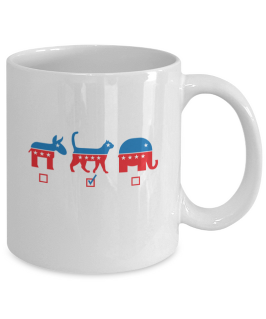 Cat Lovers Gifts , My Vote Cat - White Coffee Mug Porcelain Tea Cup 11 oz - Great Gift