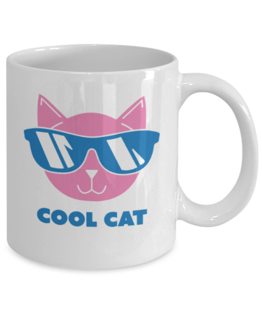 Cat Lovers Gifts , Cool Cat - White Coffee Mug Porcelain Tea Cup 11 oz - Great Gift