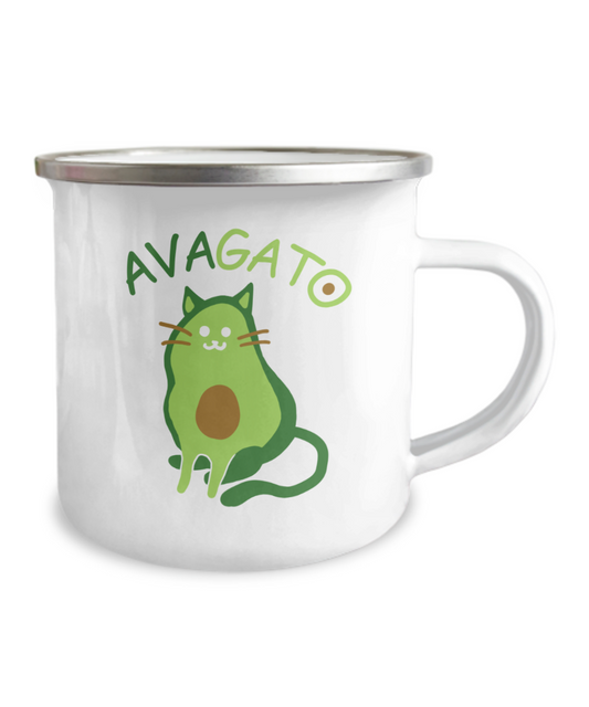 Cat Lovers Coffee Mug, Avagato -12 Oz Stainless Steel Enamel Finish White Camper Coffee Mug