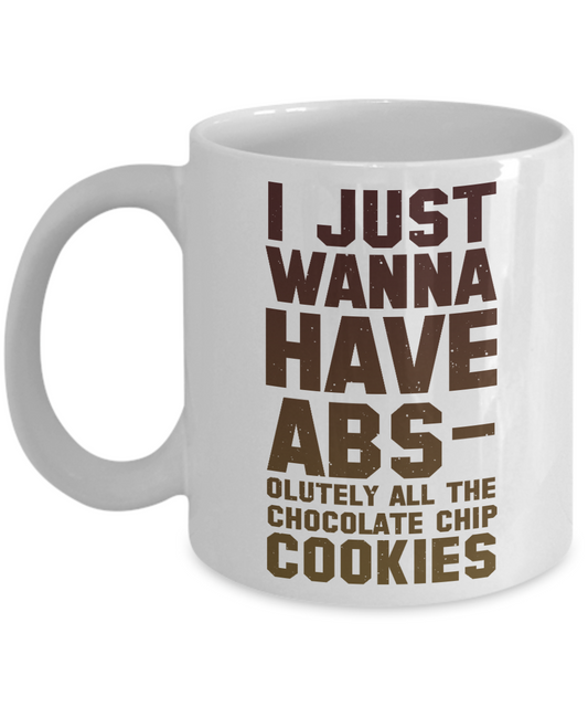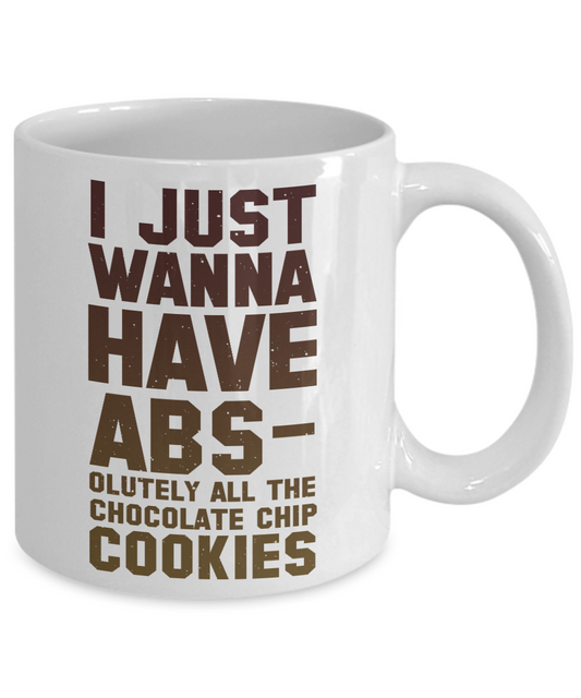 Chocolate Lover Coffee Mug, I Just Wanna Have Absolutely All The Chocolate Chip Cookies-White Porcelain Coffee Mug 11 oz