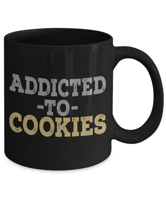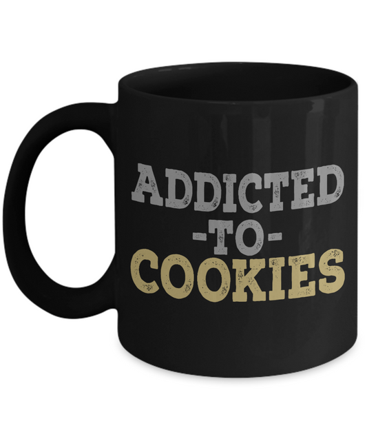 Cookies Lover Coffee Mug, Addicted To cookies, Food Lover, Love Cookies- Black Porcelain Coffee Mug 11 Oz Funny Quotes Coffee Mug