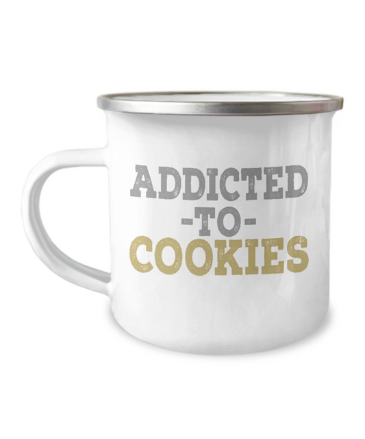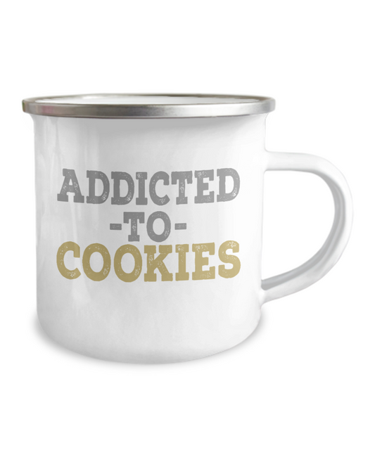 Cookies Lover Coffee Mug, Addicted To cookies, Food Lover, Love Cookies -12 Oz Stainless Steel Enamel Finish White Camper Coffee Mug