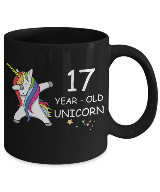 Unicorn Birthday gift 17th Birthday Gift for Women - 17 Year Old Unicorn Dabbing Mug - Funny Black Porcelain Coffee 11 oz, 17th Anniversary Bday Gift for Grandma, Mom, Sister, Bestie - Legends are Born In 2003