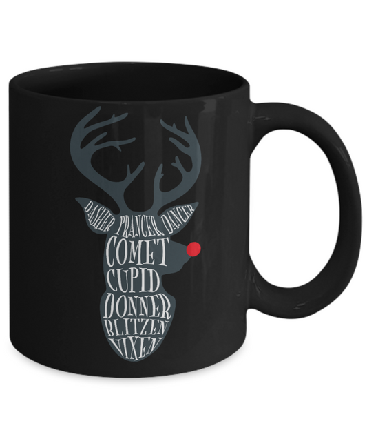 Knightmare before christmas mug - Reindeer Names - Funny Christmas Gifts Mugs, Christmas Gifts for family Ceramic Cup Black, Funny Mugs Gift Ideas 11 Oz
