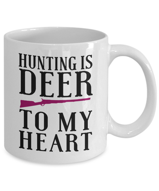 Hunter Coffee Mug, Hunting Is Deer To My Heart-White Porcelain Coffee Mug 11 oz for hunter, dad, son,daughter,mom