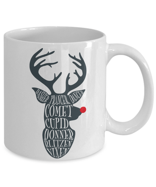 Knightmare before christmas mug - Reindeer Names - Funny Christmas Gift Mugs, Christmas Gifts for family Ceramic Cup White, Funny Mugs Gift Ideas 11 Oz
