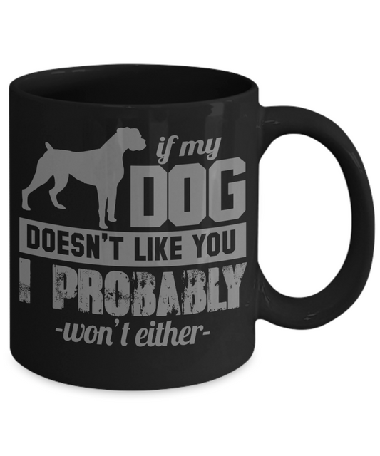 Dog Lover Coffee Mug, If My Dog Doesn't Like You I Probably Won't either- Black Porcelain Coffee Mug 11 Oz For Dog Lover, Dad, Mom
