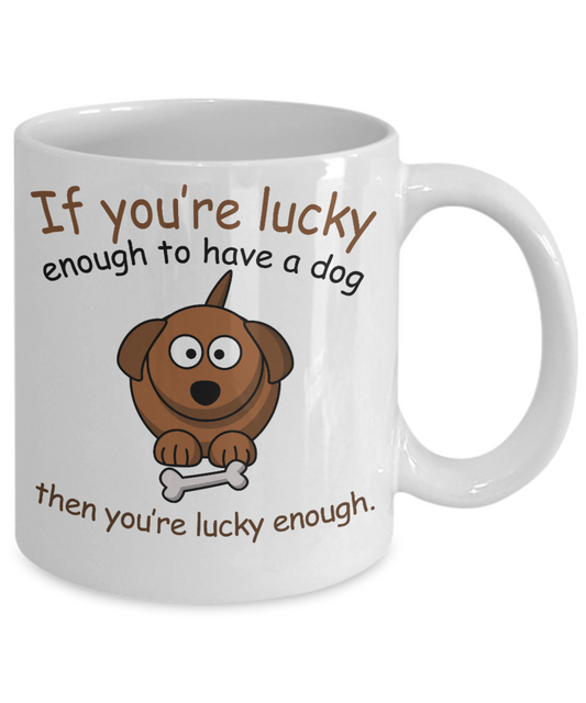 Dog Lover Coffee Mug, If You're Lucky Enough To Have A Dog Then You're Lucky Enough- White Porcelain Coffee Mug 11 Oz For Dog Lover, Dad, Mom
