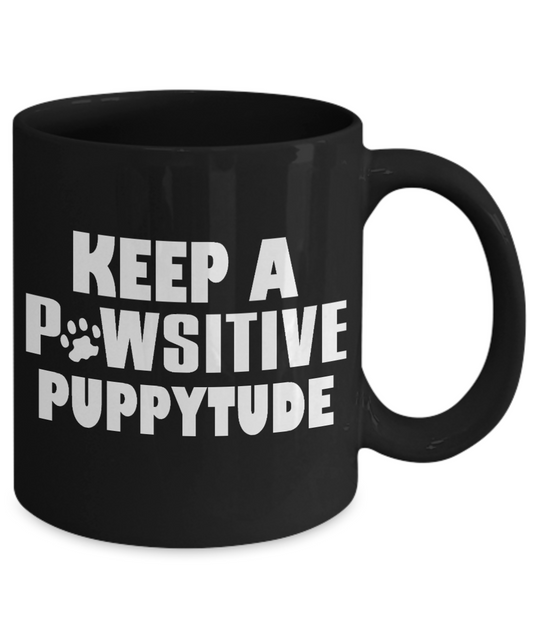Dog Lover Coffee Mug, Keep A Powsitive Puppytude -Black Porcelain Coffee Mug 11 Oz For Dog Lover, Dad, Mom