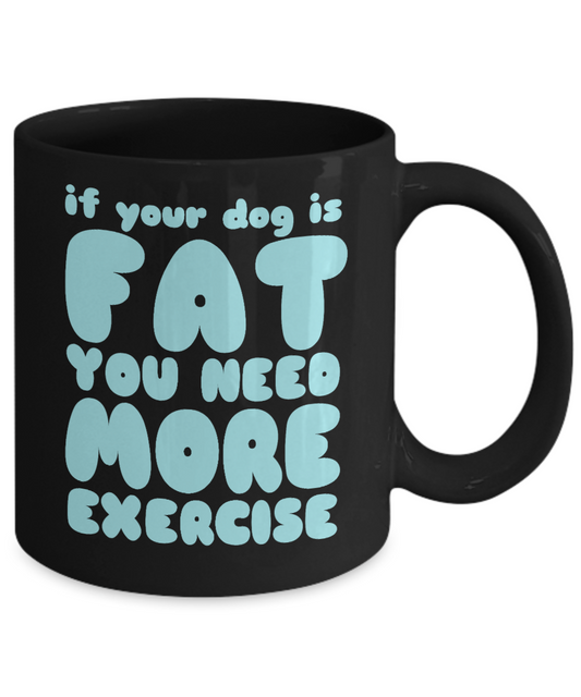Dog Lover Coffee Mug, If Your Dog Is Fat You Need More Exercise - Black Porcelain Coffee Mug 11 Oz