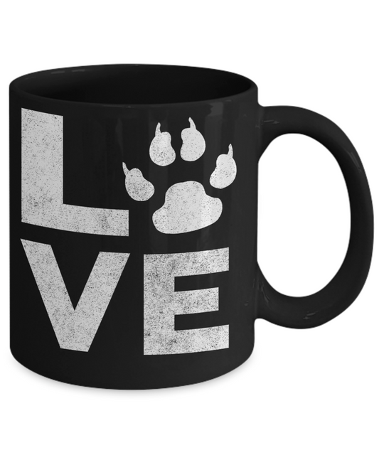 Dog Lover Coffee Mug, Love Dogs - Black Porcelain Coffee Mug 11 Oz For Dog Lover, Dad, Mom