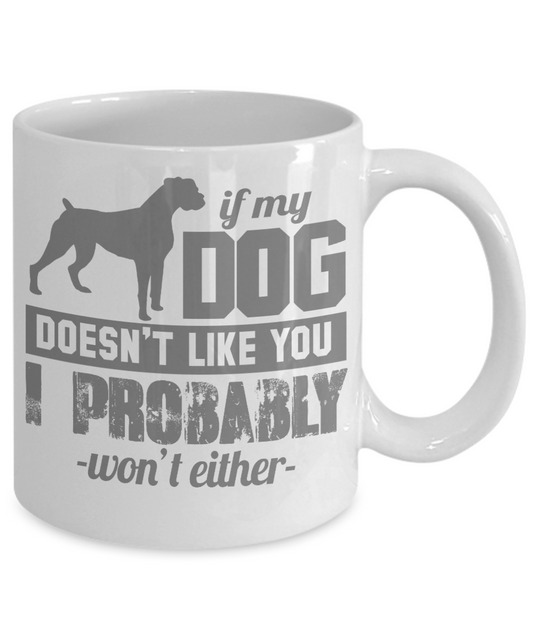 Dog Lover Coffee Mug, If My Dog Doesn't Like You I Probably Won't either- White Porcelain Coffee Mug 11 Oz For Dog Lover, Dad, Mom