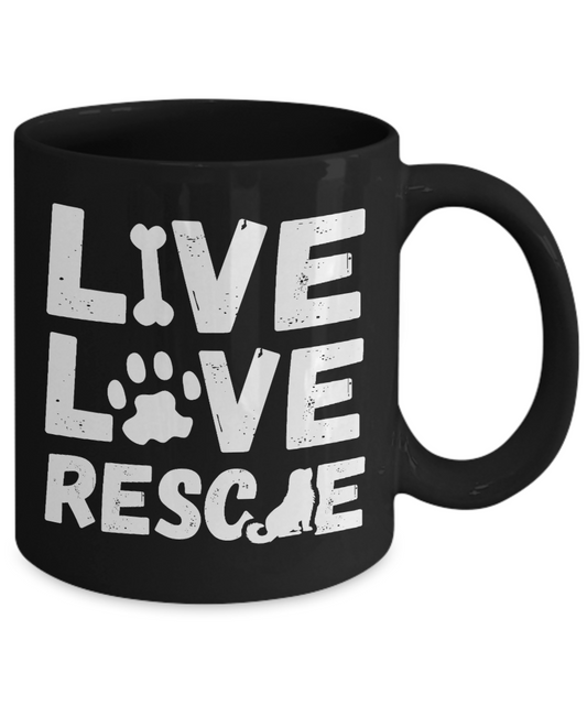 Dog Lover Coffee Mug, Live Love Rescue - Black Porcelain Coffee Mug 11 Oz For Dog Lover, Dad, Mom