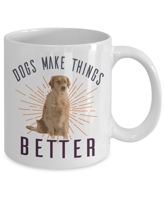 Dog Lover Coffee Mug, Dogs Make Things Better- White Porcelain Coffee Mug 11 Oz Funny Quotes Coffee Mug