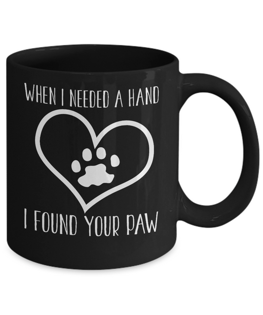 Dog Lover Coffee Mug, When I Need A Hand I Found Your Paw- Black Porcelain Coffee Mug 11 Oz For Dog Lover, Dad, Mom