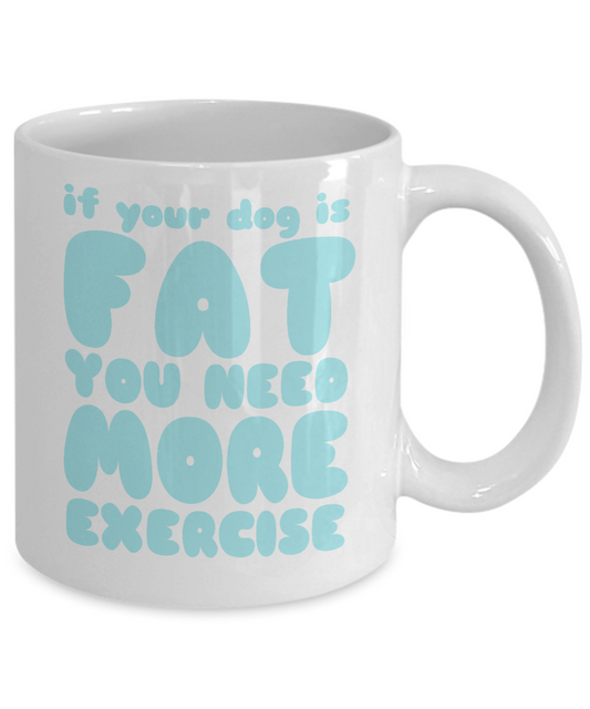 Dog Lover Coffee Mug, If Your Dog Is Fat You Need More Exercise - White Porcelain Coffee Mug 11 Oz