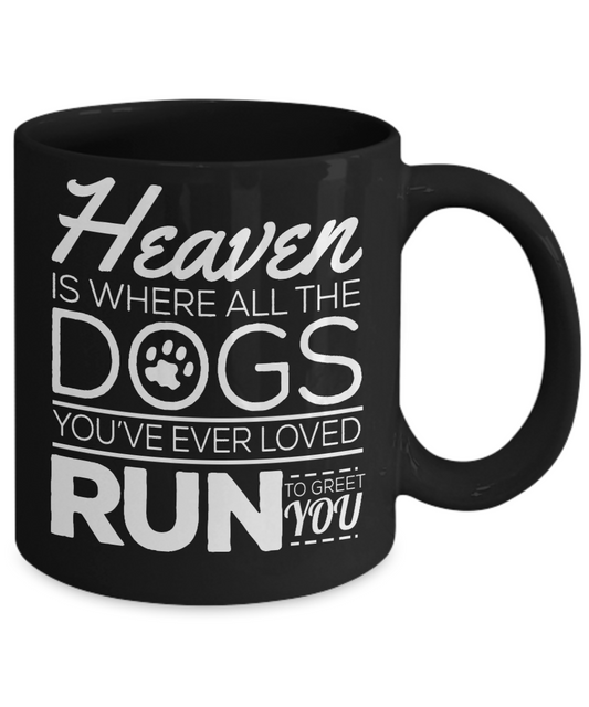 Dog Lover Coffee Mug, Heaven Is Where All The Dogs You've Ever Loved Run To Greet You- Black Porcelain Coffee Mug 11 Oz For Dog Lover, Dad, Mom
