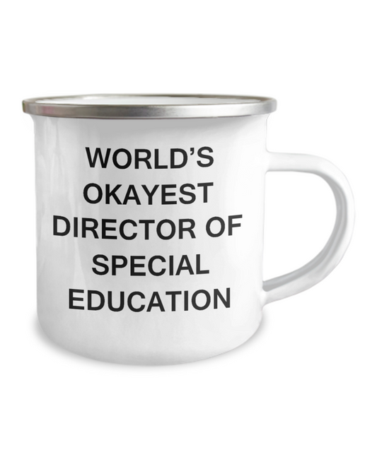 Director of Special Education Coffee Mug - World's Okayest Director of Special Education-12 Oz Stainless Steel Enamel Finish White Camper Coffee Mug
