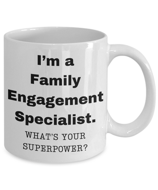 I am a Family Engagement Specialist, what is your super power, Birthday cup for Family Engagement Specialist -11 oz White ceramic mug