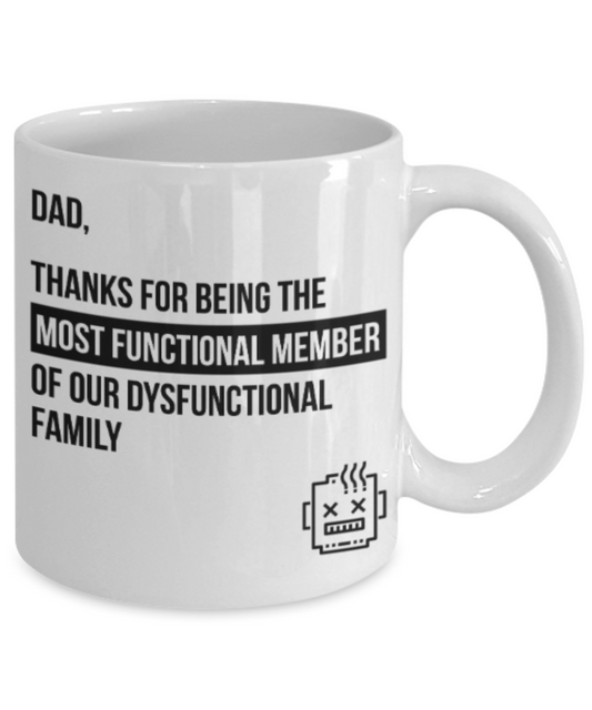 Gifts for older dad who has everything - Dad, Thanks for being the most functional member of our Dysfunctional family - Funny White Porcelain Coffee Mug Cute Ceramic Cup 11 oz