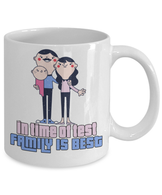 Family Lovers Mugs, In my time of test Family is best - Funny White Porcelain Coffee 11 oz