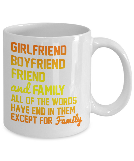 Girlfriend Boyfriend Friend And Family All of The Words Have End In Them Except for Family- White Porcelain Coffee Mug 11 Oz