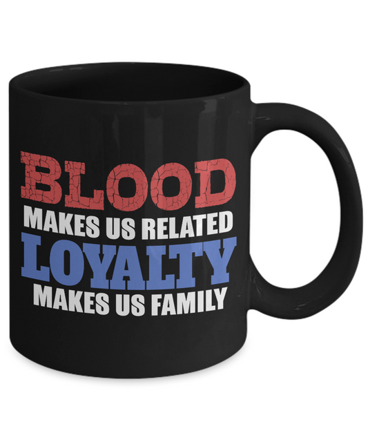 Blood Makes Us Related loyalty Makes Us Family- Black Porcelain Coffee Mug 11 Oz Funny Quotes Coffee Mug