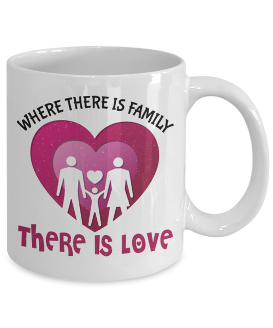 Family Lovers Mugs, Where there is family there is love - Funny White Porcelain Coffee 11 oz