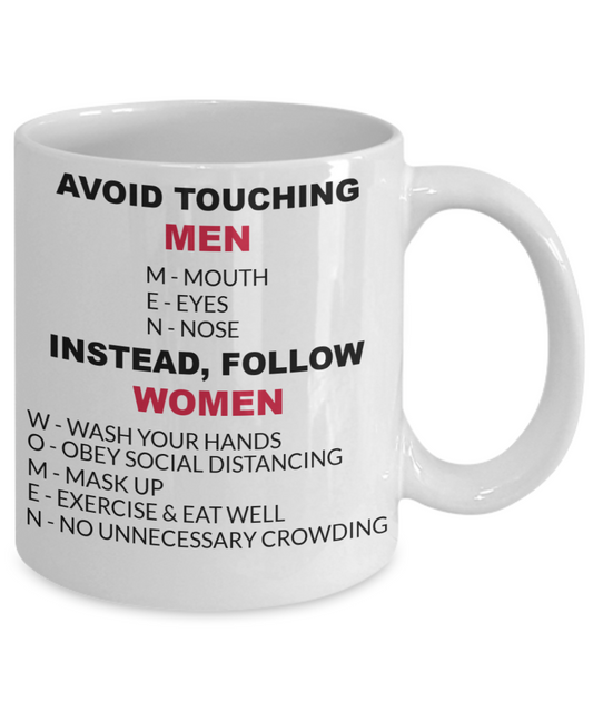 Funny Mug-Avoid Touching MEN Instead, Follow WOMEN Coffee Mug Funny Saying,Birthday Gifts, Gifts for men and women 11 oz coffee mug