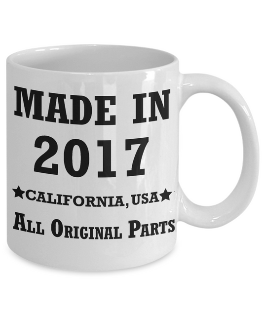 2nd birthday gifts for women - Made in 2017 All Original Parts California - Best 2nd Birthday Gifts for family Ceramic Cup White, Funny Mugs Gift Ideas 11 Oz