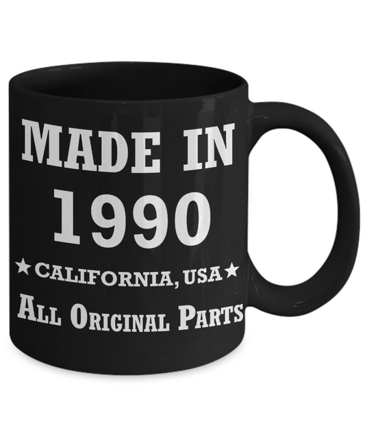 29th birthday gifts for men - Made in 1990 All Original Parts California - Best 29th Birthday Gifts for family Ceramic Cup Black, Funny Mugs Gift Ideas 11 Oz