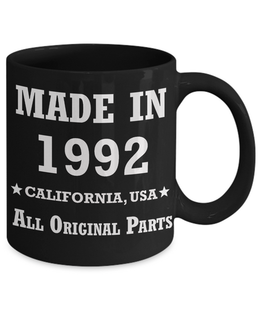 27th birthday gifts for men - Made in 1992 All Original Parts California - Best 27th Birthday Gifts for family Ceramic Cup Black, Funny Mugs Gift Ideas 11 Oz