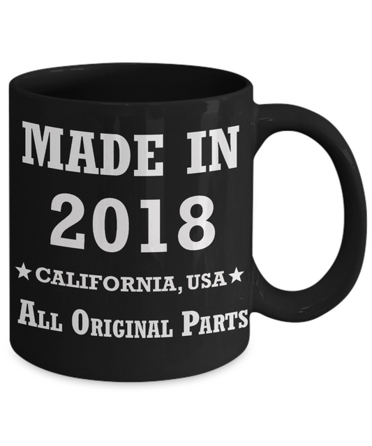 1st birthday gifts for women - Made in 2018 All Original Parts California - Best 1st Birthday Gifts for family Ceramic Cup Black, Funny Mugs Gift Ideas 11 Oz