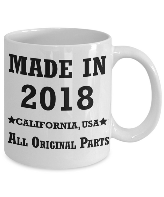 1st birthday gifts for women - Made in 2018 All Original Parts California - Best 1st Birthday Gifts for family Ceramic Cup White, Funny Mugs Gift Ideas 11 Oz