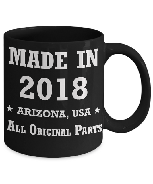 1st birthday gifts - Made in 2018 All Original Parts Arizona - Best 1st Birthday Gifts for family Ceramic Cup Black, Funny Mugs Gift Ideas 11 Oz