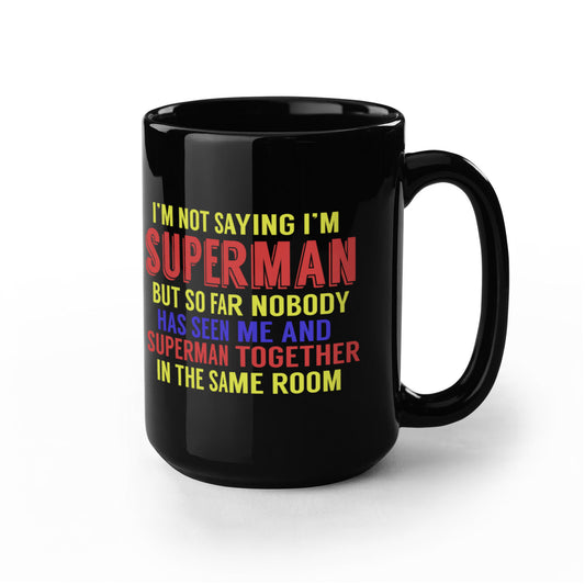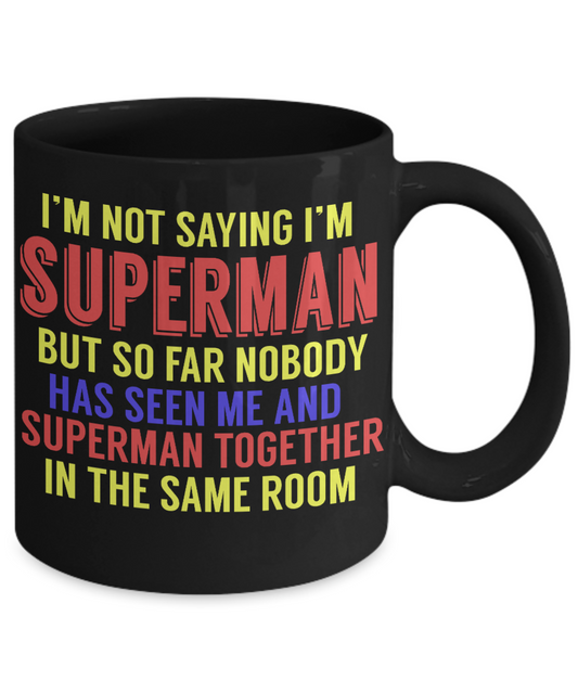 Superman and Me Coffee Mug, I'm Not Saying I'm Superman But..- Black Porcelain Coffee Mug 11 Oz Funny Quotes Coffee Mug