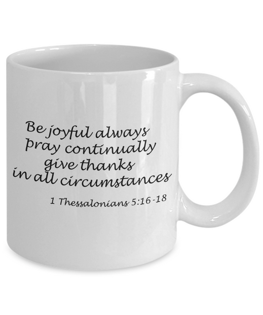 1 Thessalonians 5:16-18 bible quotes, Be joyful always - White Coffee Mug Tea Cup 11 oz Gift