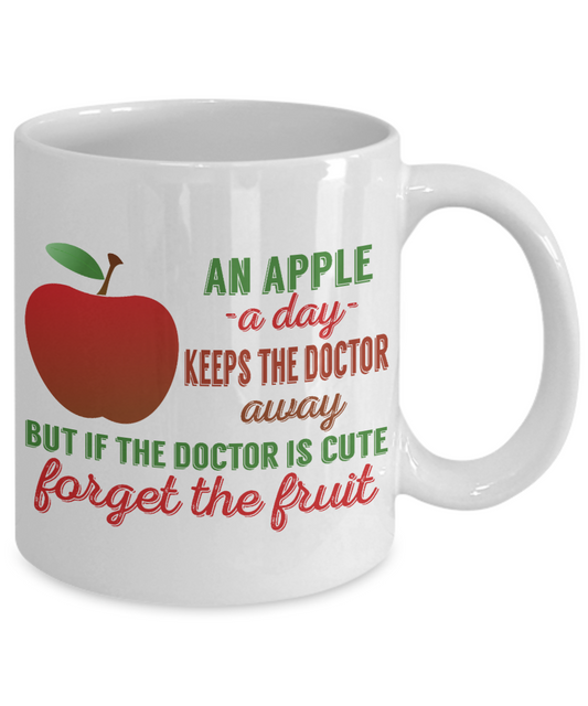 An Apple A Day Keeps The Doctor Away But If The Doctor Is Cute Forget The Fruit- White Porcelain Coffee Mug 11 Oz Funny Quotes Coffee Mug
