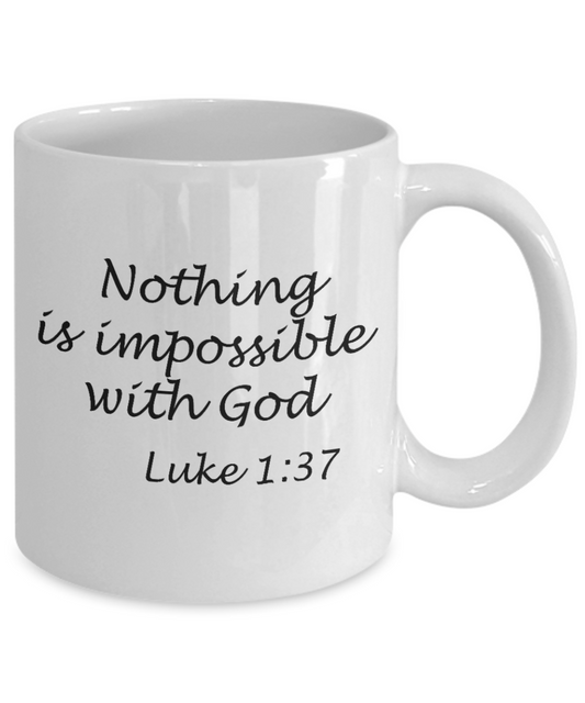 Luke 1:37 bible quotes, Nothing is impossible with God - White Coffee Mug Tea Cup 11 oz Gift