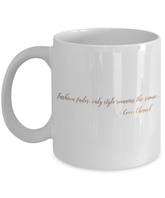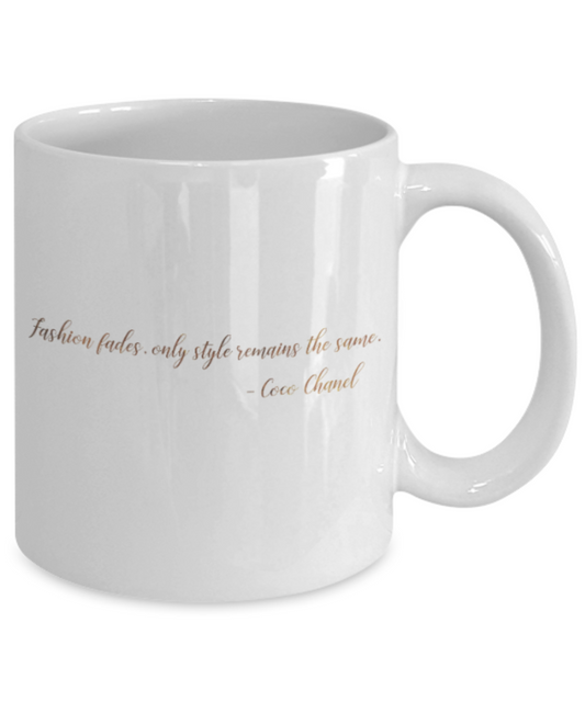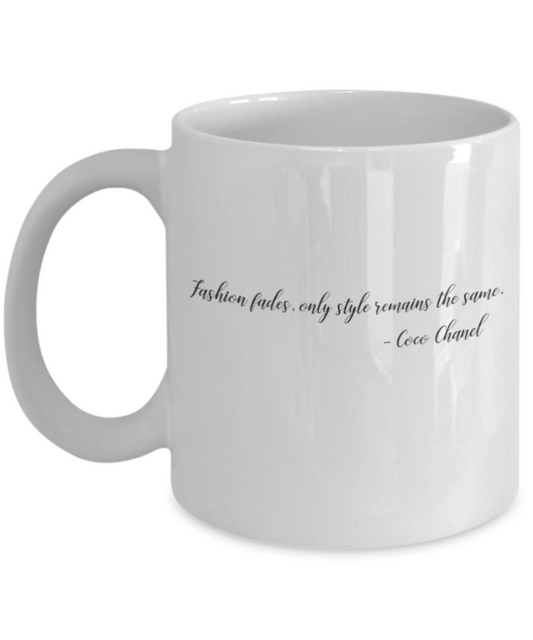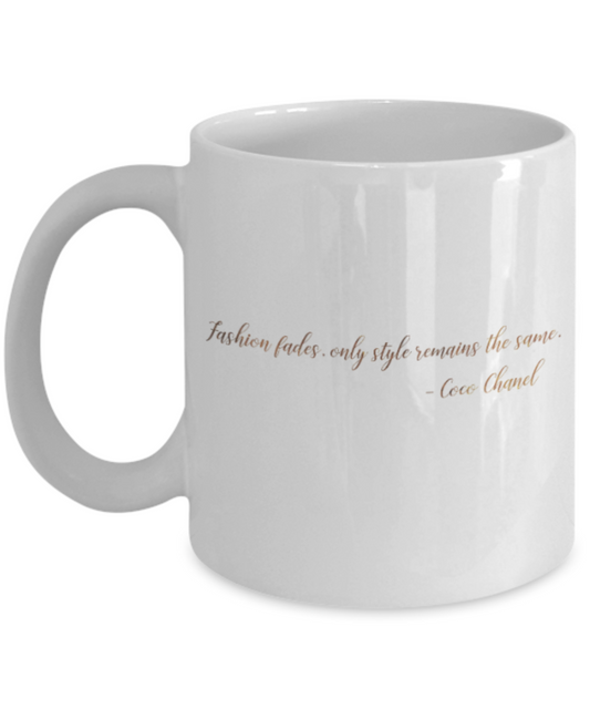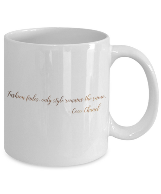 Motivational mugs for women , Fashion fades Only style remains the same - White Coffee Mug Tea Cup 11 oz Gift