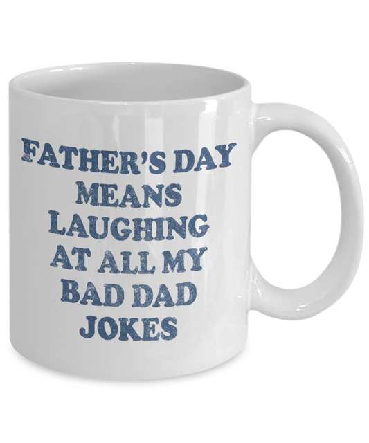 Dear Dad Coffee Mug, Father's Day Means Laughing At All My Bad Dad Jokes-White Porcelain Coffee Mug 11 oz For Father, Son, Daughter, Fathers Day