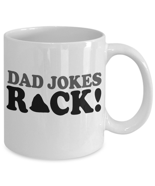 Dear Dad Coffee Mug, Dad Jokes Rocks-White Porcelain Coffee Mug 11 oz For Father, Son, Daughter, Fathers Day